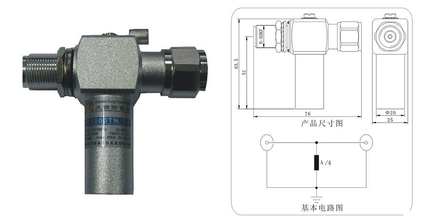 用于微波通信或雷达等系统,产品串接在高频传输电缆和系统设备之间,能够有效*来自天馈传输线上的感应雷电流、浪涌脉冲电压对系统设备带来的危害。
